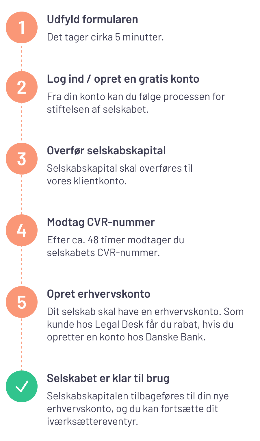 Bemærk, at Legal Desk kun opretter selskaber med kontant selskabskapital.