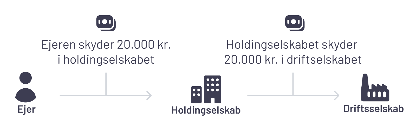 Hvis du opretter holdingselskabet samtidigt med driftsselskabet, opnår du derudover den fordel, at selskabskapitalen kan “bruges to gange”. Du behøver således ikke at indbetale fuld selskabskapital for begge selskaber. Rent praktisk vil du som ejer stifte holdingselskabet først, hvor selskabskapitalen indskydes. Herefter vil holdingselskabet så oprette driftsselskabet med den samme selskabskapital. Driftsselskabet vil herefter have den samlede selskabskapital, mens holdingselskabet vil have ejerandele i driftsselskabet, der vil have samme værdi som den indskudte selskabskapital.