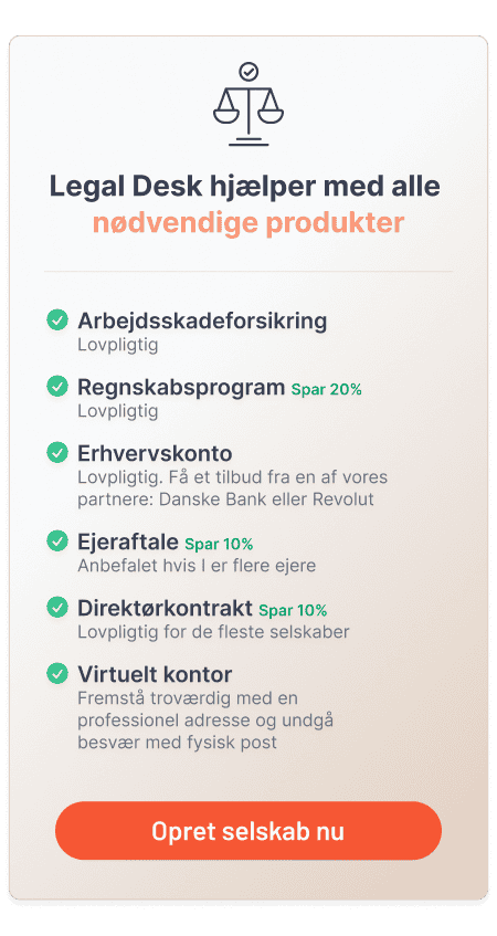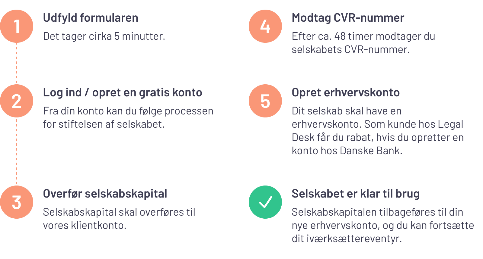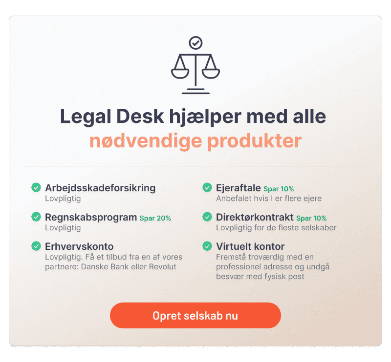 Bemærk, at Legal Desk kun opretter selskaber med kontant selskabskapital.