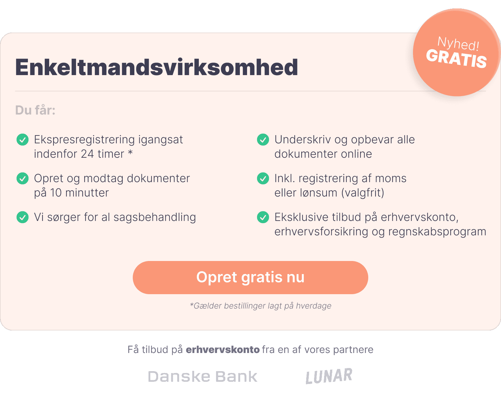 Du kan enten gå i gang med oprettelsen af din enkeltmandsvirksomhed med det samme ved at klikke på 'Opret enkeltmandsvirksomhed' herunder, eller du kan læse mere om, hvad en enkeltmandsvirksomhed kan bruges til her.