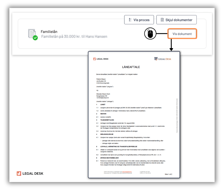 Du kan altid se det endelige dokument ved at klikke på "Vis dokument".